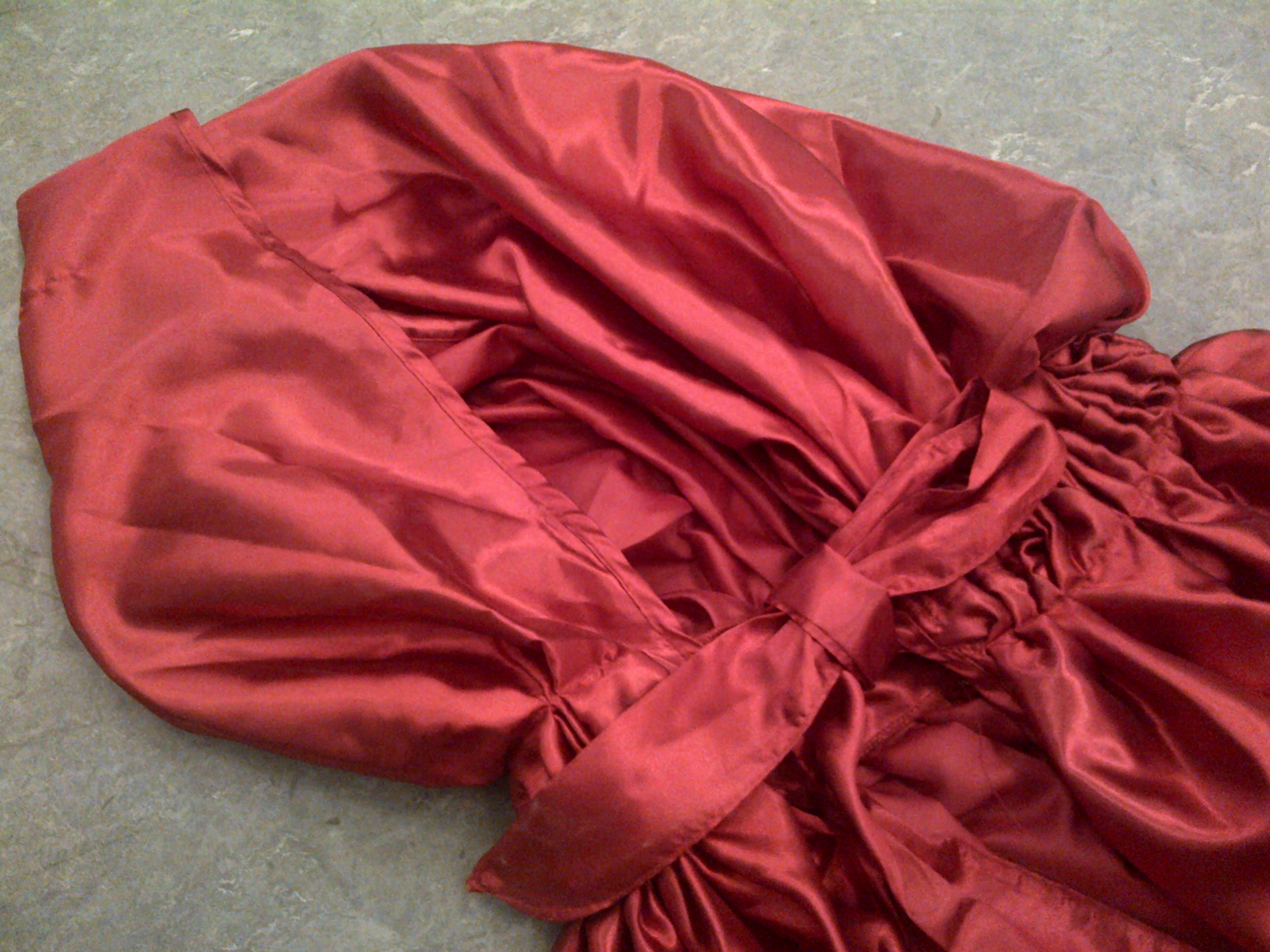 Er hat eine angekräuselte Kapuze im venianischen Stil, vorne gebunden