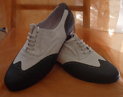 Schwarze/ weißer Herrenstepschuh mit Ledersohle.