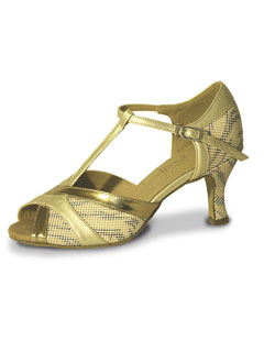 6cm normalweite Flare Absatz, Light Gold PU/Brokat